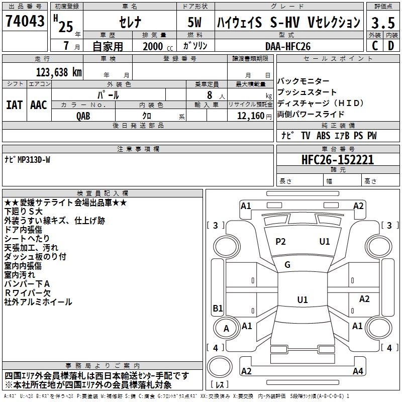 NISSAN SERENA 2013 г., лот № 74043