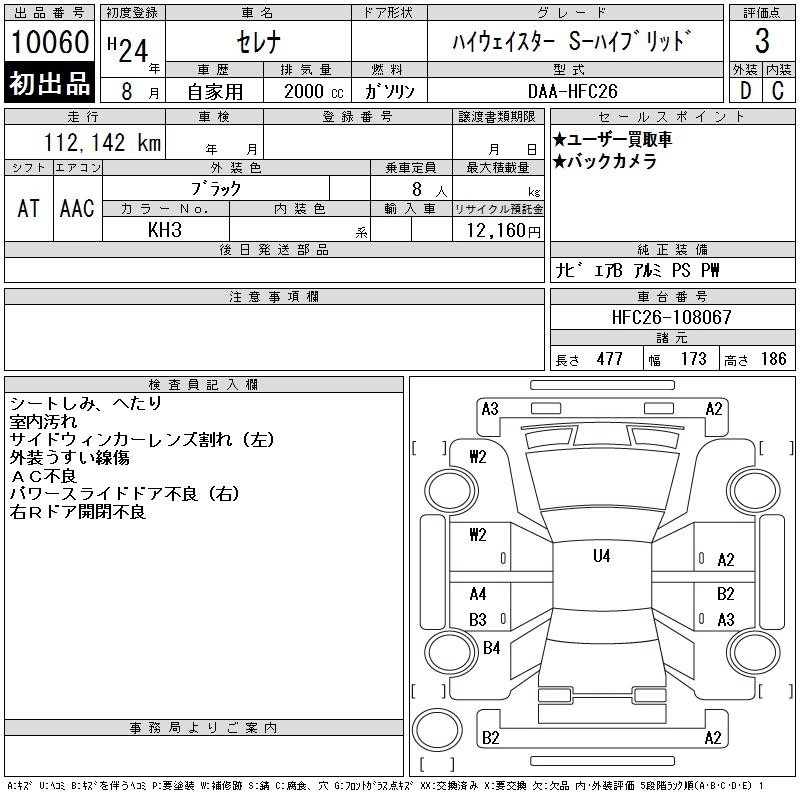 NISSAN SERENA 2012 г., лот № 10060