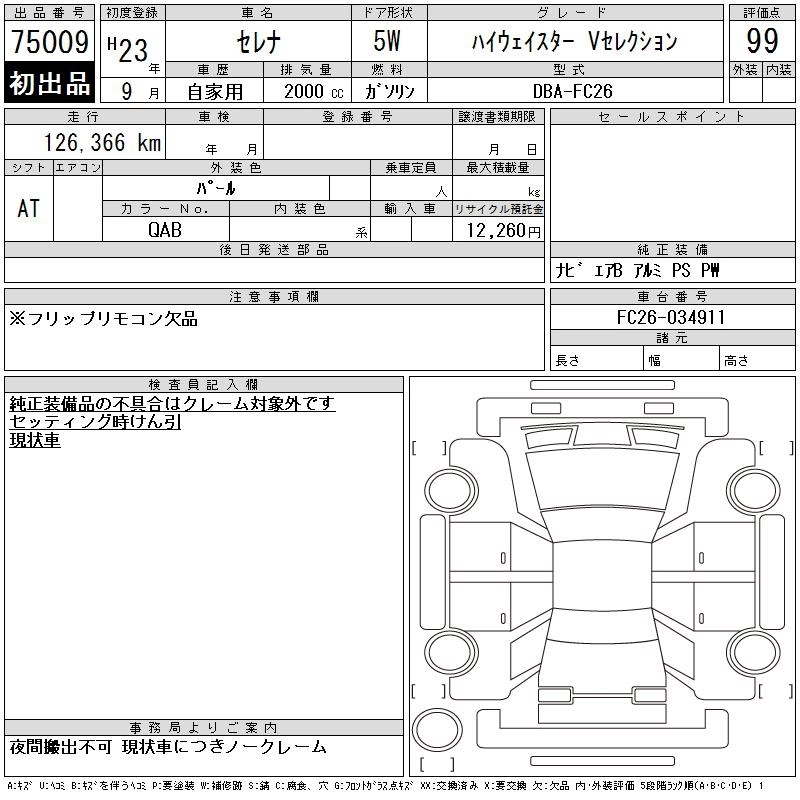 NISSAN SERENA 2011 г., лот № 75009