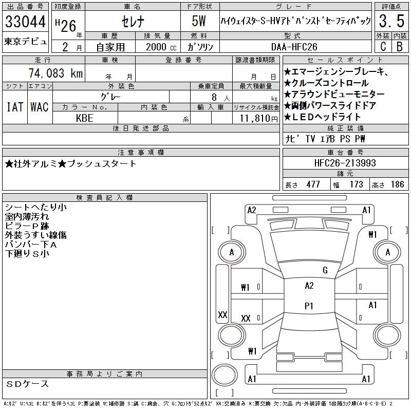 NISSAN SERENA 2014 г., лот № 33044