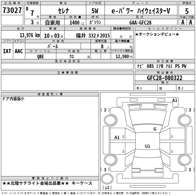 Статус выставлен на аукцион Лот 73027 Аукцион TAA Chubu Дата аукциона 30.10.2025