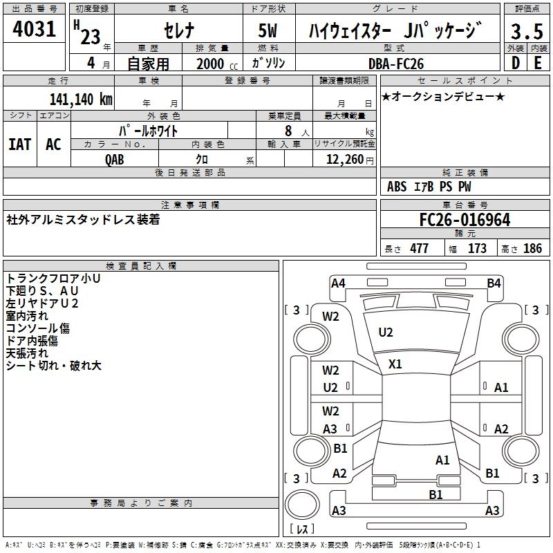 Статус выставлен на аукцион Лот 4031 Аукцион TAA Chubu Дата аукциона 30.10.2025