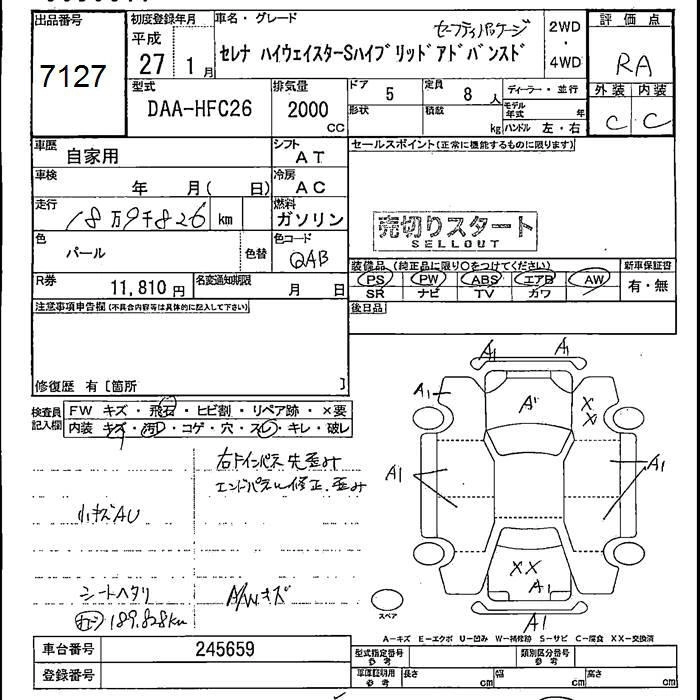 NISSAN SERENA 2015 г., лот № 7127