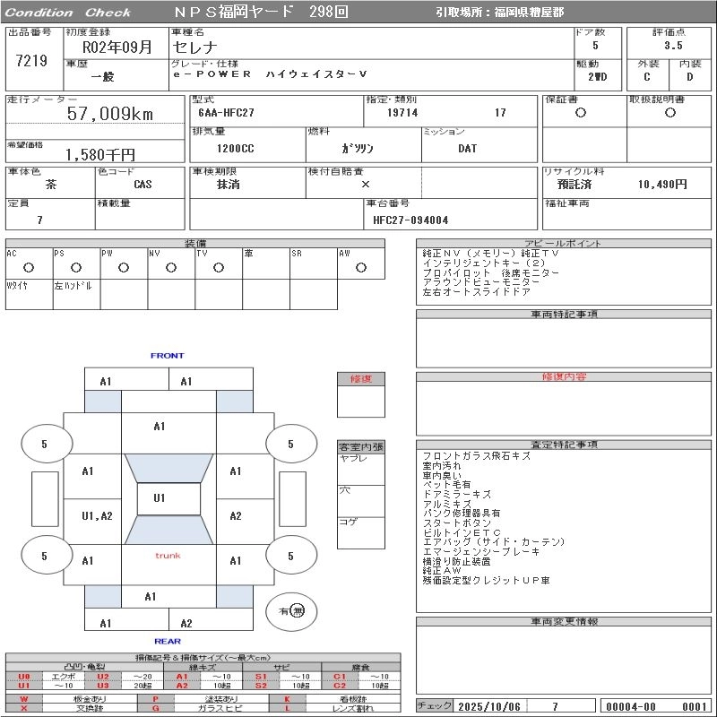 Статус выставлен на аукцион Лот 7219 Аукцион NPS Fukuoka Дата аукциона 04.11.2025