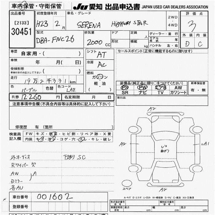 NISSAN SERENA 2011 г., лот № 30451