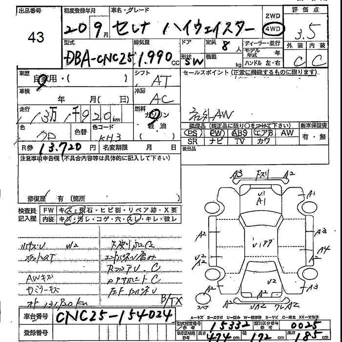 NISSAN SERENA 2008 г., лот № 43