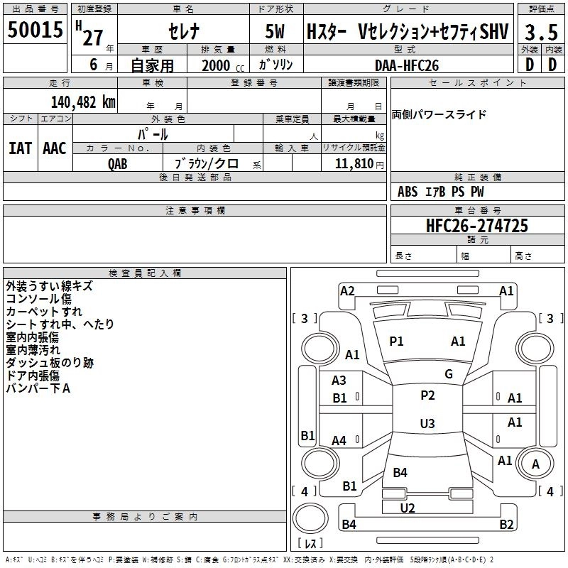 NISSAN SERENA 2015 г., лот № 50015
