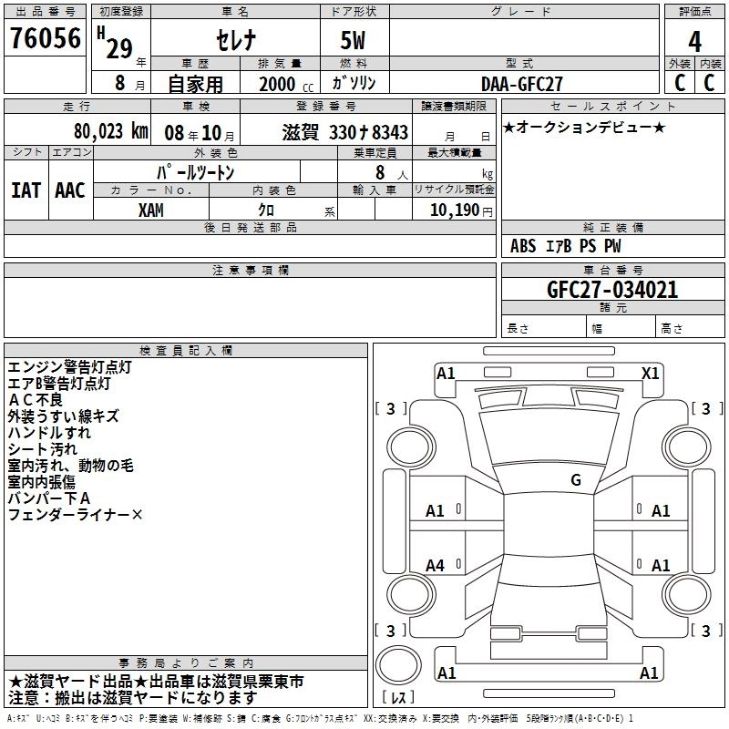 NISSAN SERENA 2017 г., лот № 76056