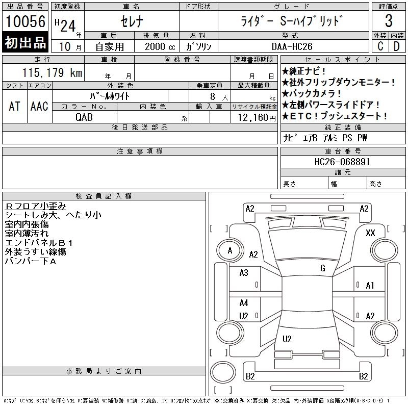 NISSAN SERENA 2012 г., лот № 10056