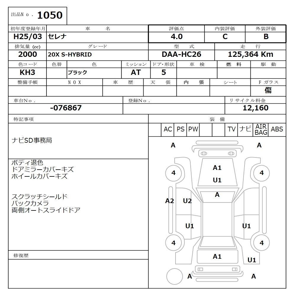 NISSAN SERENA 2013 г., лот № 1050