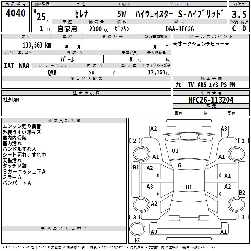 NISSAN SERENA 2013 г., лот № 4040