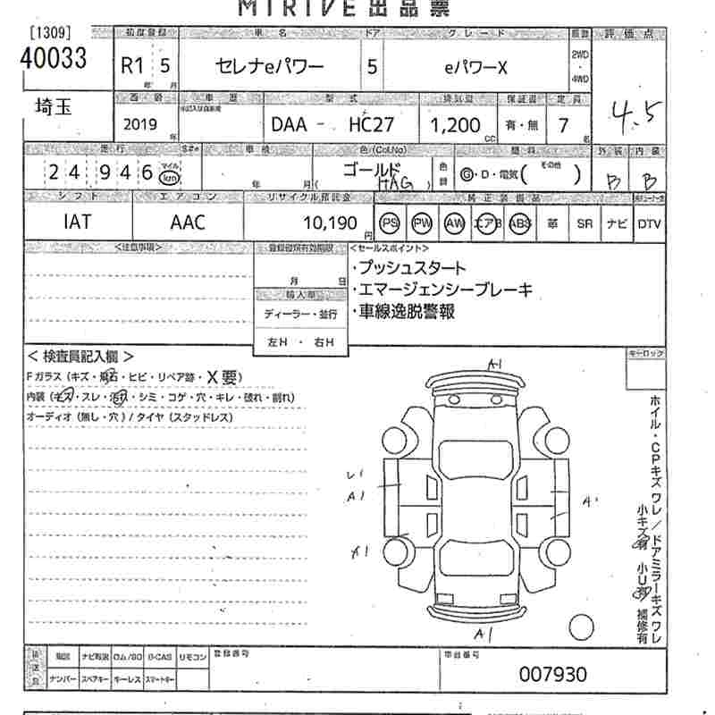 NISSAN SERENA 2019 г., лот № 40033