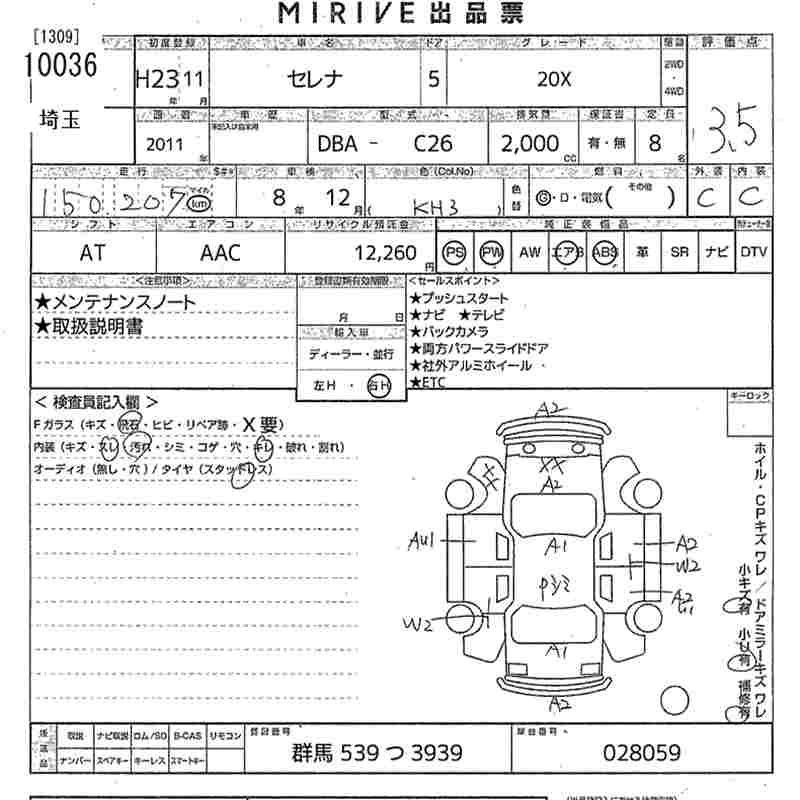 NISSAN SERENA 2011 г., лот № 10036