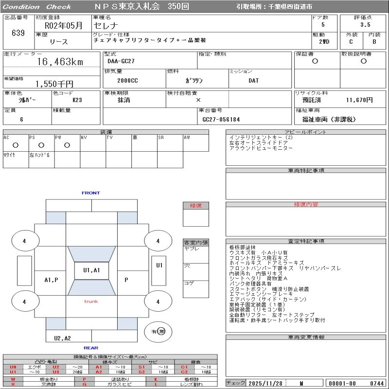 NISSAN SERENA 2020 г., лот № 639