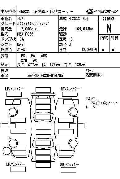 NISSAN SERENA 2011 г., лот № 45022
