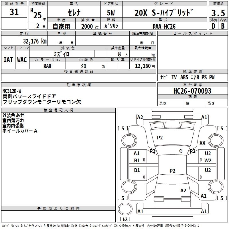 NISSAN SERENA 2013 г., лот № 31