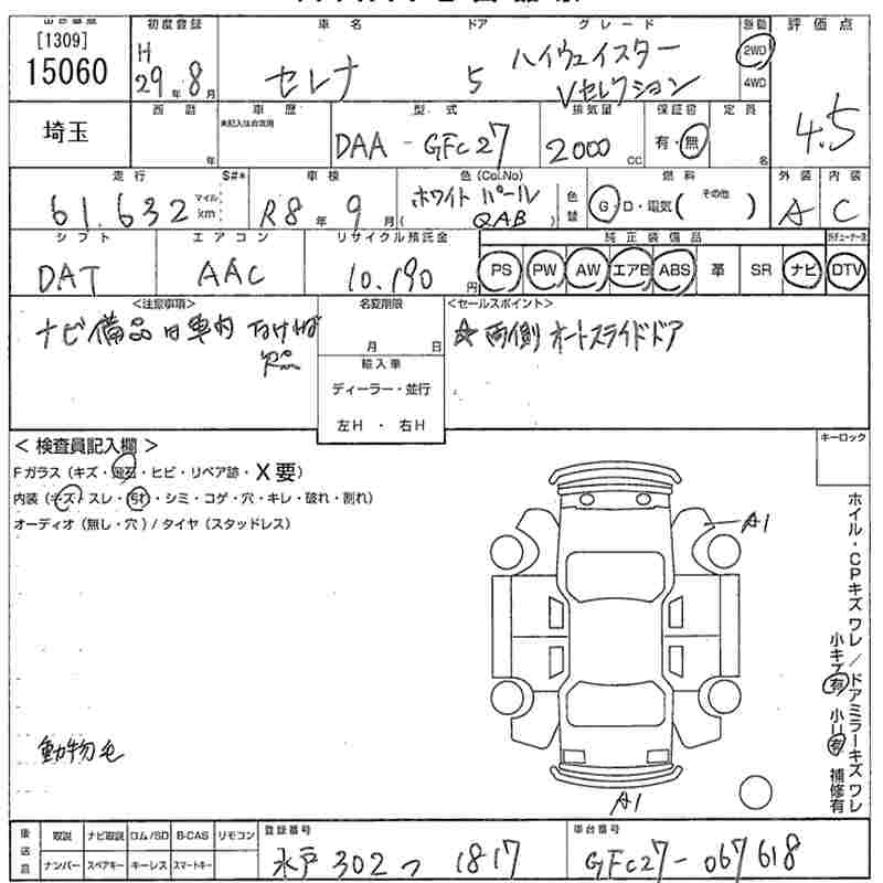 NISSAN SERENA 2017 г., лот № 15060