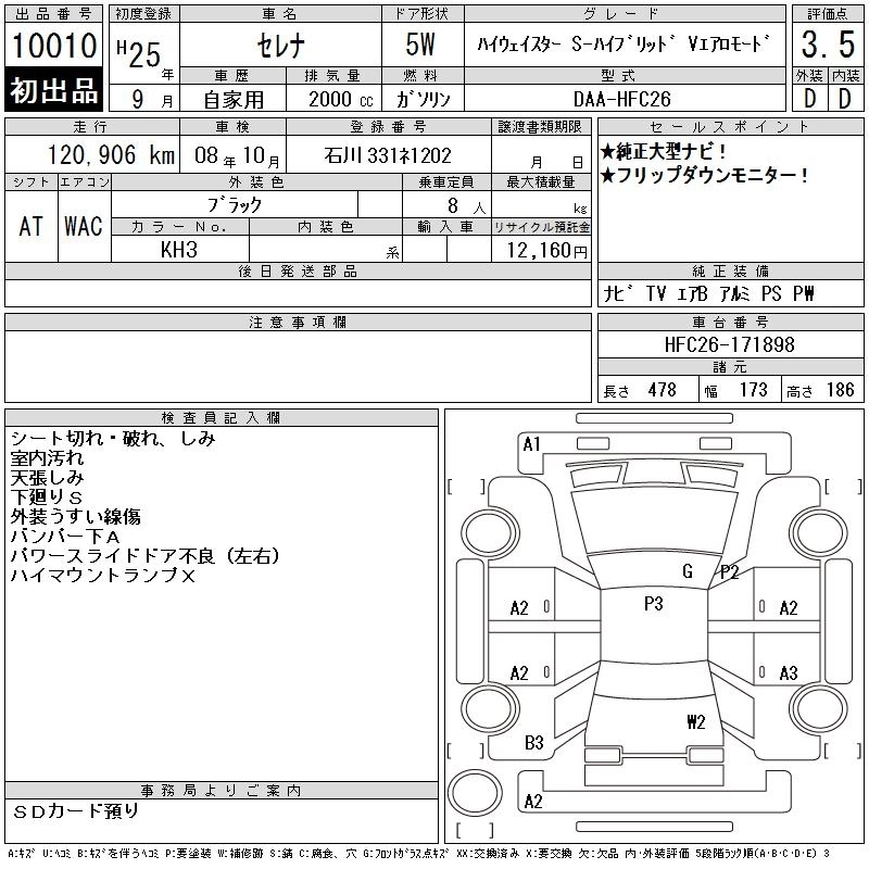 NISSAN SERENA 2013 г., лот № 10010