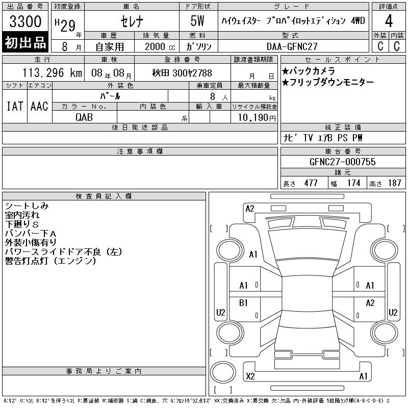 NISSAN SERENA 2017 г., лот № 3300