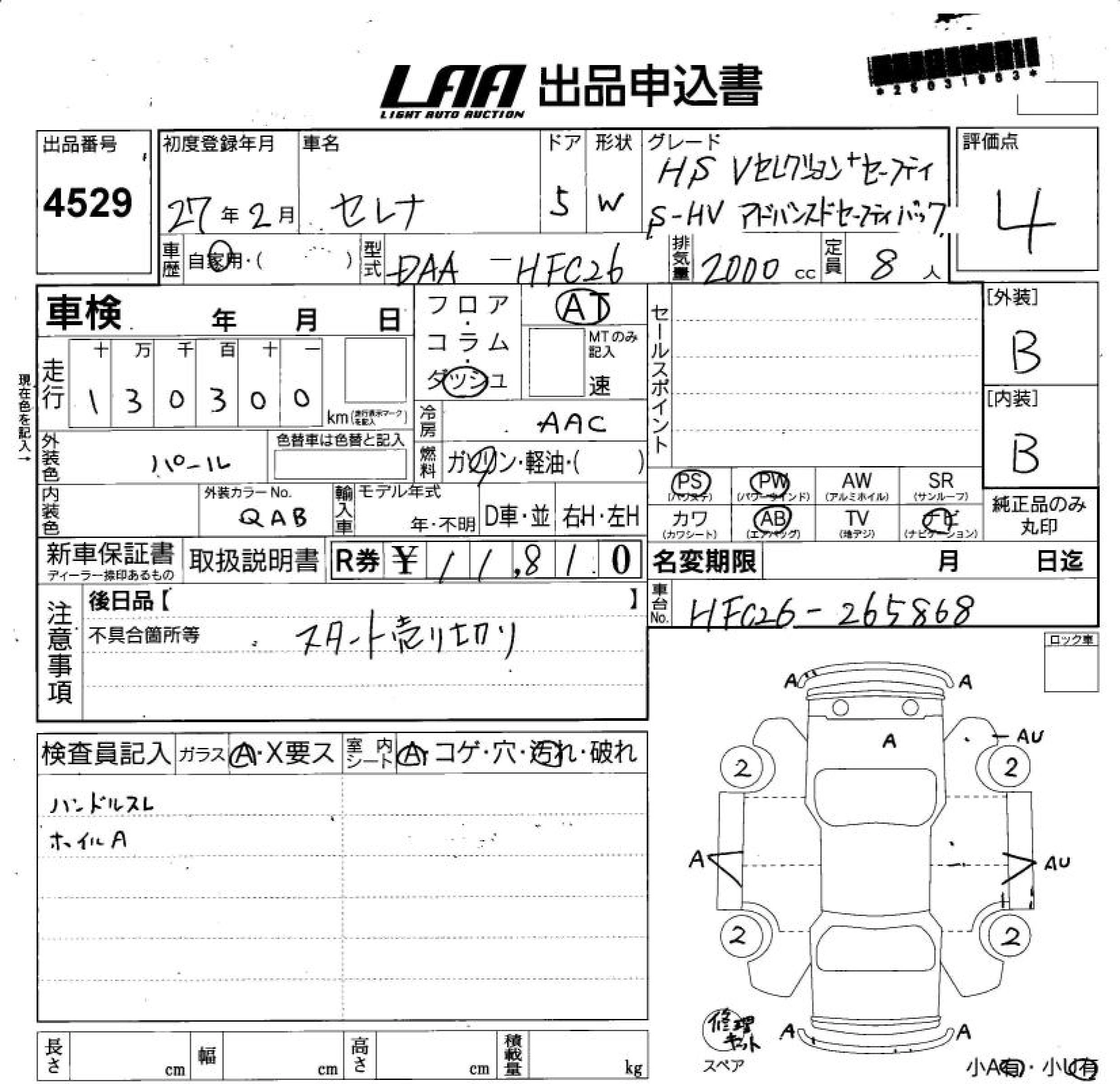 NISSAN SERENA 2015 г., лот № 4529