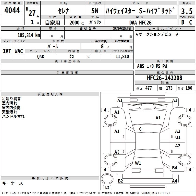 NISSAN SERENA 2015 г., лот № 4044