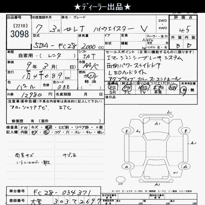 Статус выставлен на аукцион Лот 3098 Аукцион JU Saitama Дата аукциона 23.12.2025