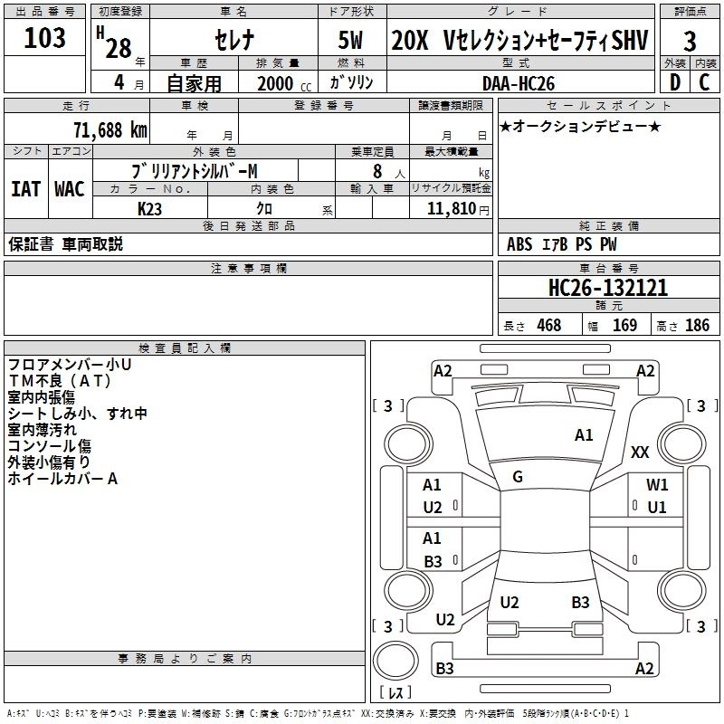 NISSAN SERENA 2016 г., лот № 103