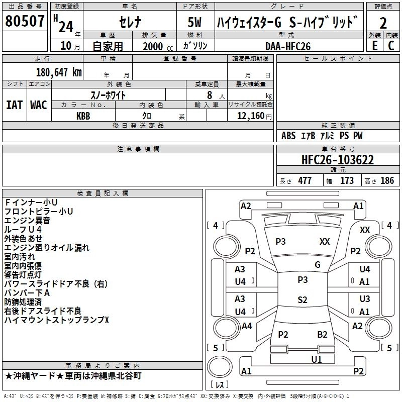 NISSAN SERENA 2012 г., лот № 80507