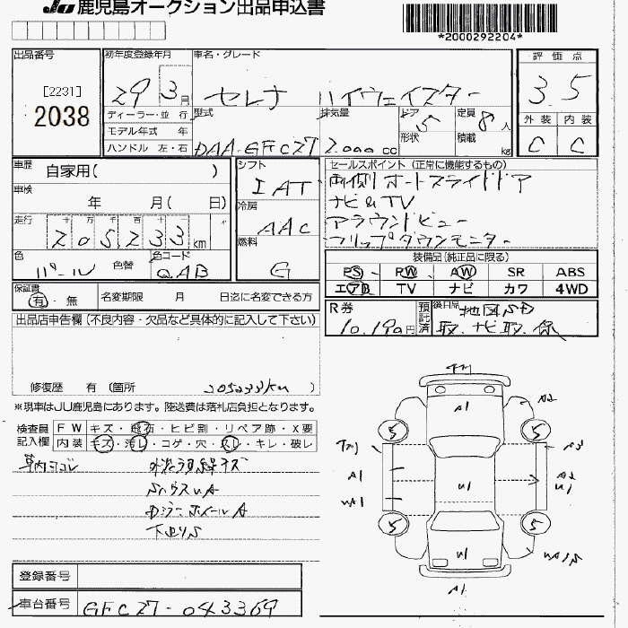 NISSAN SERENA 2017 г., лот № 2038
