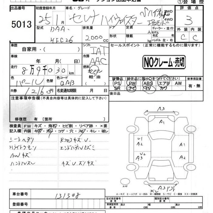 NISSAN SERENA 2013 г., лот № 5013