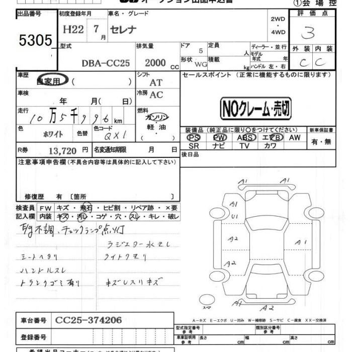 NISSAN SERENA 2010 г., лот № 5305