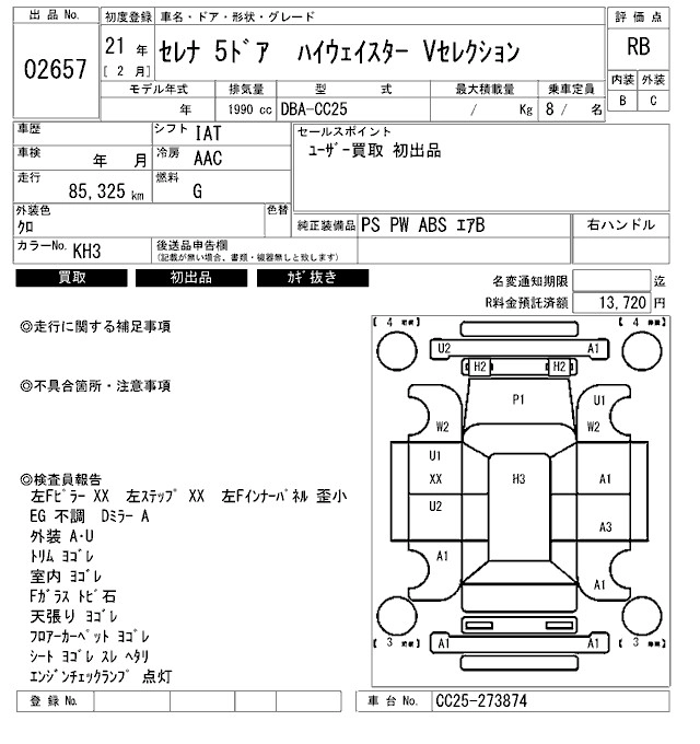 Итоговая цена авто на аукционе 125 000 ¥