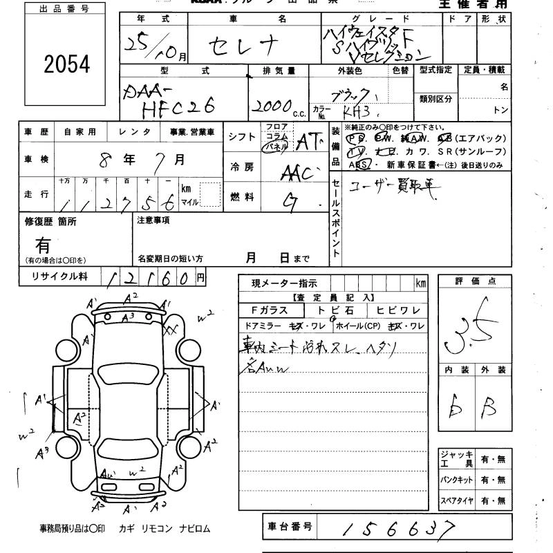 NISSAN SERENA 2013 г., лот № 2054