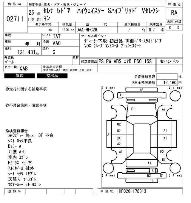 Статус продан Лот 2711 Аукцион ARAI Bayside Дата аукциона 23.01.2026