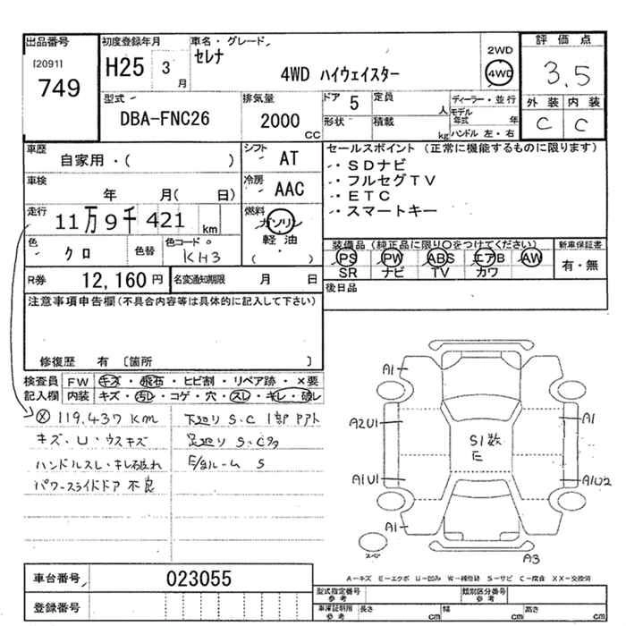 Год выпуска2013 Пробег 119 000 км КузовFNC26 Комплектация4WD HIGHWAY STAR