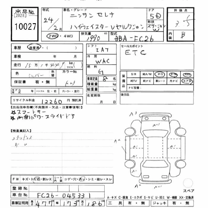 NISSAN SERENA 2012 г., лот № 10027