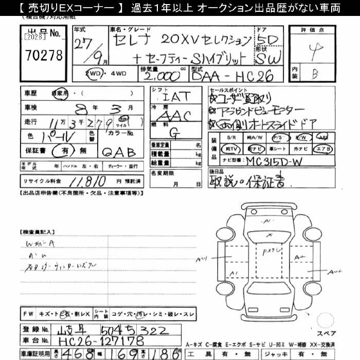 NISSAN SERENA 2015 г., лот № 70278