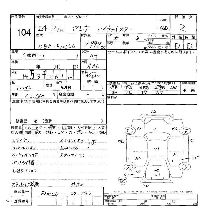 NISSAN SERENA 2012 г., лот № 104