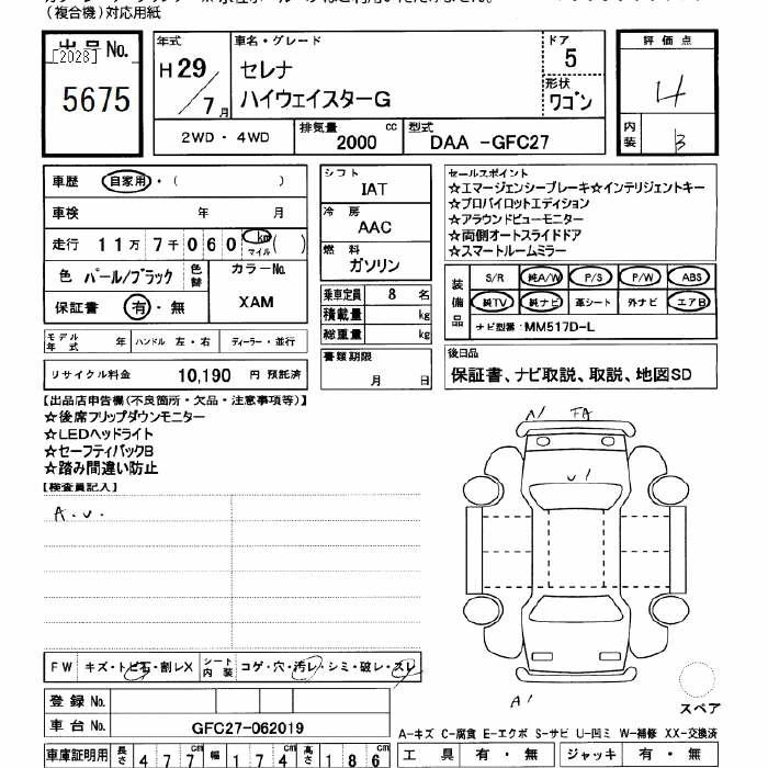 NISSAN SERENA 2017 г., лот № 5675