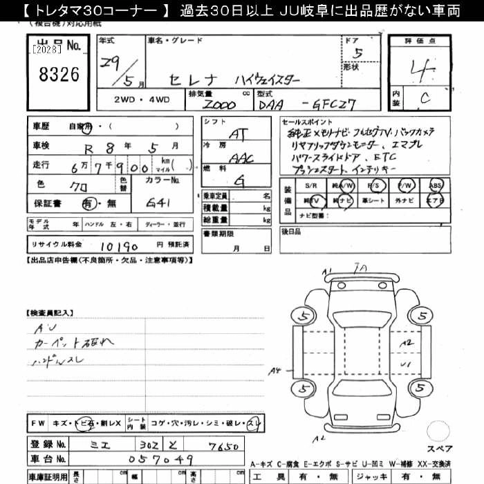 Статус выставлен на аукцион Лот 8326 Аукцион JU Gifu Дата аукциона 24.01.2026