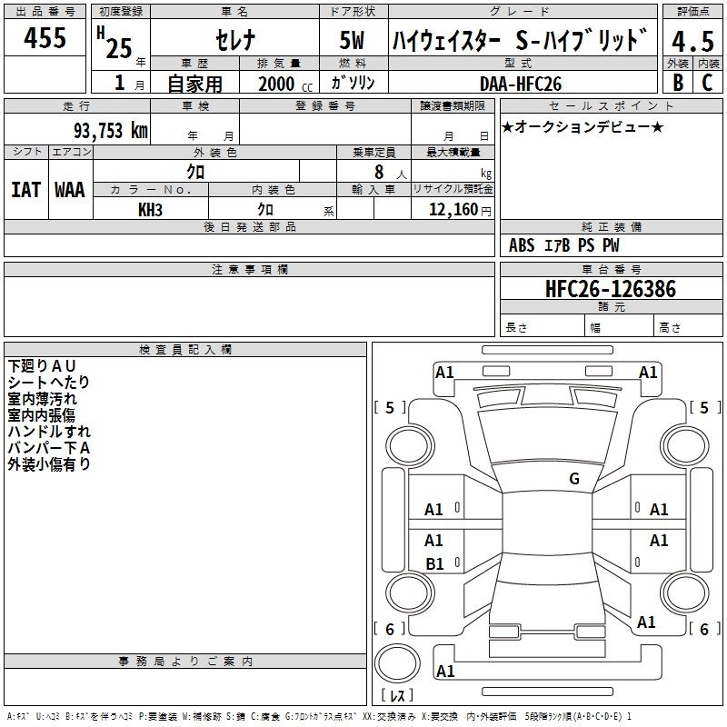 NISSAN SERENA 2013 г., лот № 455