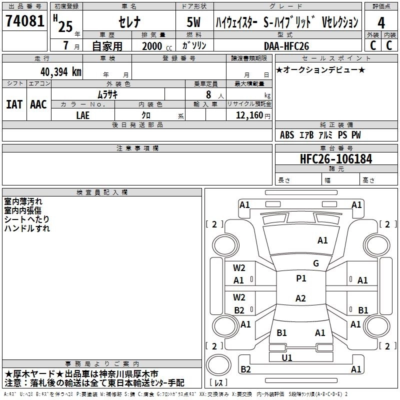 NISSAN SERENA 2013 г., лот № 74081