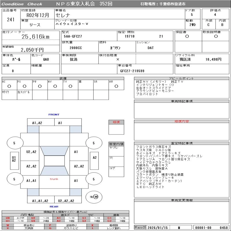 NISSAN SERENA 2020 г., лот № 241