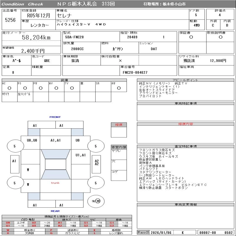 Статус выставлен на аукцион Лот 5256 Аукцион NPS Tochigi Дата аукциона 27.01.2026
