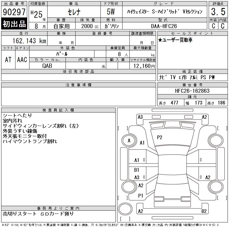 NISSAN SERENA 2013 г., лот № 90297