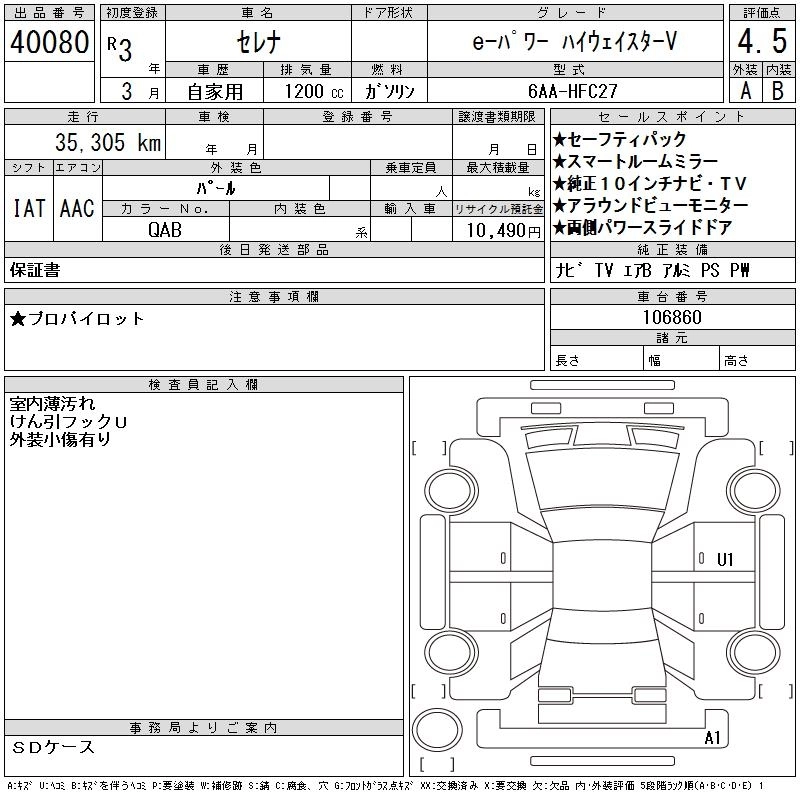 NISSAN SERENA 2021 г., лот № 40080