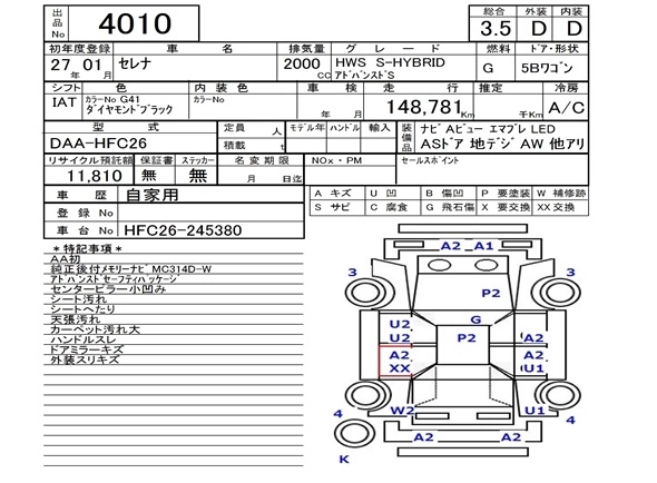 NISSAN SERENA 2015 г., лот № 4010
