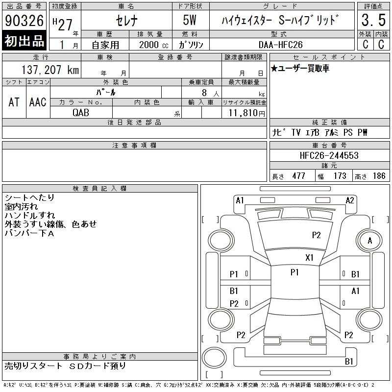 NISSAN SERENA 2015 г., лот № 90326