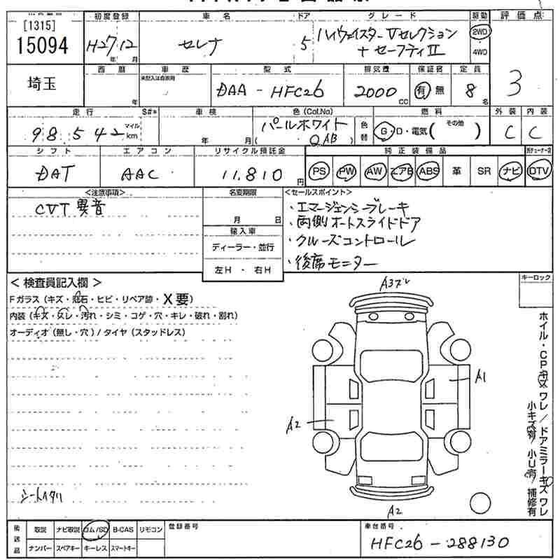 NISSAN SERENA 2015 г., лот № 15094