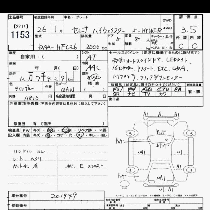 NISSAN SERENA 2014 г., лот № 1153